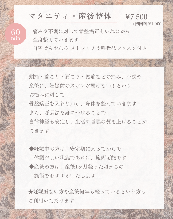 ⚫︎はじめての方は、施術時間+問診時間10分程度とお考え下さい。 初回料 ¥1,000が必要となります。⚫︎ご予約の際にご希望コースをお伝え下さい。